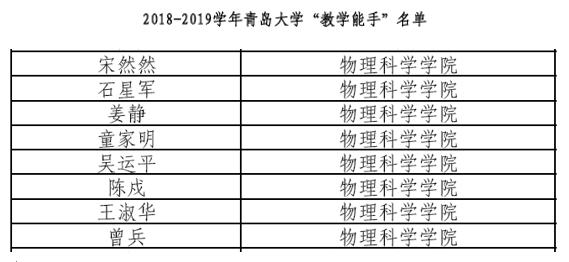 注册送彩金 8位老师获得2018-2019 学年青岛大学“教学能手”荣誉称号