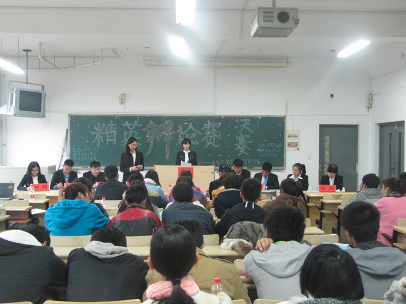 2014年精英辩论赛决赛在东校区举办。此次精英辩论赛由11月1日开始,历时近一个月,过初赛、复赛、半决赛的角逐,最终2014级电子信息类一班和应用物理一班脱颖而出进入决赛。 决赛中,正反双方就"经济发展应以教育发展为前提“还是“教育发展应以经济发展为前提"展开辩论。正方以“百年大计,教育为先”为切入点陈述己方观点,反方则从“经济基础决定上层建筑”的不争事实出发,双方旁征博引、引理据点陈述各自观点,巧辩对方提问。经过激烈辩论,2014级电子信息类一班获得此次精英辩论赛的冠军。