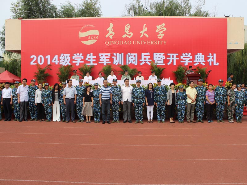 9月24日,青岛大学2014级学生军训阅兵暨开学典礼在东校区东院田径场隆重举行,参加人员有部队首长、校领导、校直有关部门负责人、各学院党政领导、分管领导、施训官兵、辅导员和2014级全体新生。