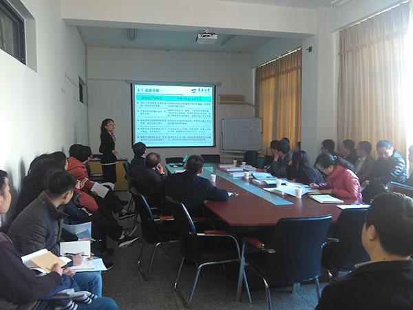 会上,滕冰副院长作了“聚焦博士点,建设双一流”的学科建设工作汇报。她首先从师资队伍建设、科研项目、科研论文、发明专利、科研/教学获奖、研究生培养质量、国际交流合作、实验条件、社会服务等方面介绍了物理学科近五年取得的成果,并在此基础上与物理学一级博士点申报基本条件、省内外兄弟院校物理学科综合实力进行了对比分析,指出了学院物理学学科的优势,找出了目前存在的不足。随后,她介绍了物理学科在ESI完成度方面的进展情况,分析了物理学科存在的问题以及在全校“双一流”建设中对其他学科所做的贡献,提出了今后努力方向和具体措施。
