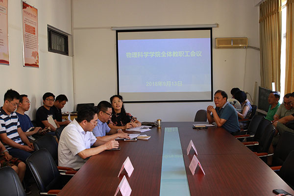 在博逸楼401会议室召开全体教职工会议,传达学校相关会议精神,部署学院秋季学期工作。学院党政领导黄国俊、滕冰、周志强、王乙潜出席会议,会议由院党委书记黄国俊主持。