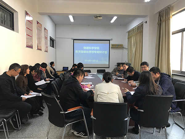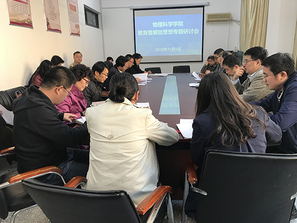 在博逸楼401会议室召开教育暨解放思想大讨论工作推进会。学院党政领导班子成员,院学术委员会、教学委员会、学生工作委员会成员,各系(中心)主任、副主任、支部书记、全体辅导员以及教师和学生代表参加了会议。