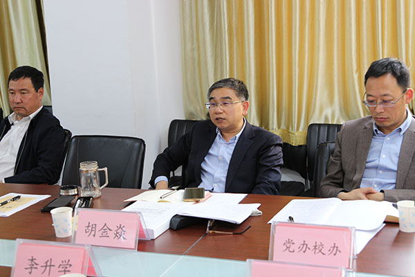 在听取汇报后,胡金焱说,物理学科建设取得新进展,内涵建设卓有成效,协同创新中心获批助力学校发展,呈现旺盛良好的增长态势。尤其在获批博士点后,学院没有停步而是更有紧迫感,持续推进,更快发展,没有辜负专家的认可和支持,学院工作值得肯定。胡金焱指出,学院配备助理,形成梯队,协同工作,有利于加强班子建设。针对学科建设,他从六个方面提出了希望和要求。