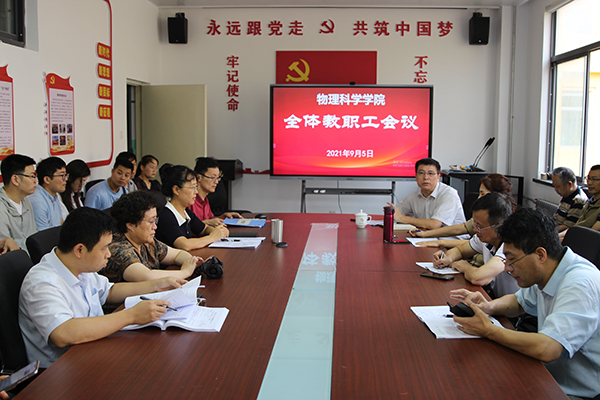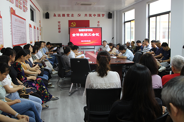 在博逸楼401会议室召开全体教职工会议,传达学校有关会议精神,解析学院“十四五”发展规划,部署新学期相关工作。会议由院党委书记李升学主持,院党政领导出席会议。