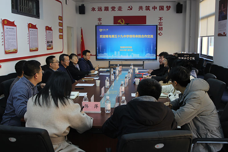 李传军、陈锦分别代表学校和市南区教体局进行了致辞。滕冰介绍了学院发展历史、师资建设、学科专业、人才培养、物理师范教育等相关情况。吴秀伟对59中的办学历史、办学思想、教学改革、物理教育等情况进行了介绍。