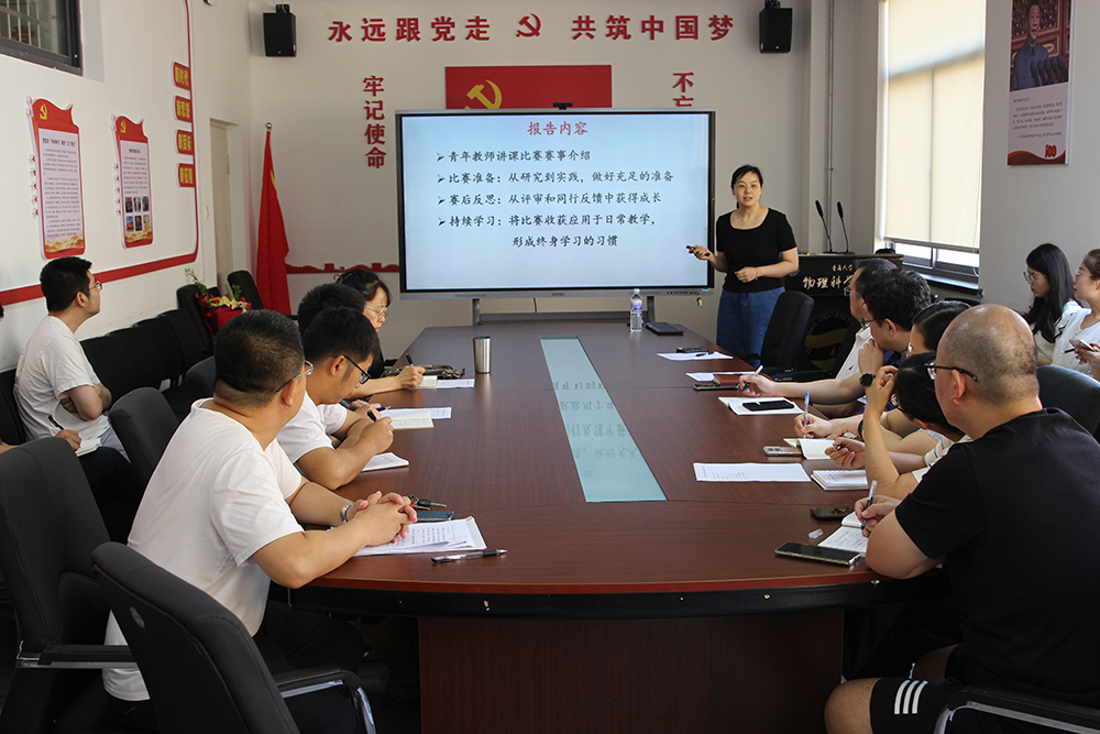 学院邀请年度教学十佳、青岛大学优秀教师、全国高等学校物理基础课程青年教师讲课比赛二等奖和山东省超星杯讲课比赛二等奖获奖教师徐洁作了“以赛促教,教赛相长”助力青年教师教研相长经验分享报告。学院党委书记郝伟、院长滕冰以及青年教师参加研修班,研修班由院长助理邵渭泉主持。