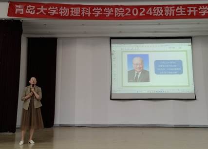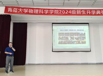 学院党委书记郝伟为2024级新生班主任颁发聘书;教师代表、山东省教学名师云茂金以自己的求学与教学经验为切入点,围绕“大学”、“专业”和“规划”三个关键词,勉励新生:理想的实现,需要脚踏实地,需要不断学习、思考、实践与感悟。老生代表张光瑞从“物理人”、“青大人”、“青年人”三种角色分享了自己在物院的学习体会;新生代表胡高源表达了对大学生活的期待,接下来会以新行动、新风貌去适应新环境,开启精彩的物理之旅。