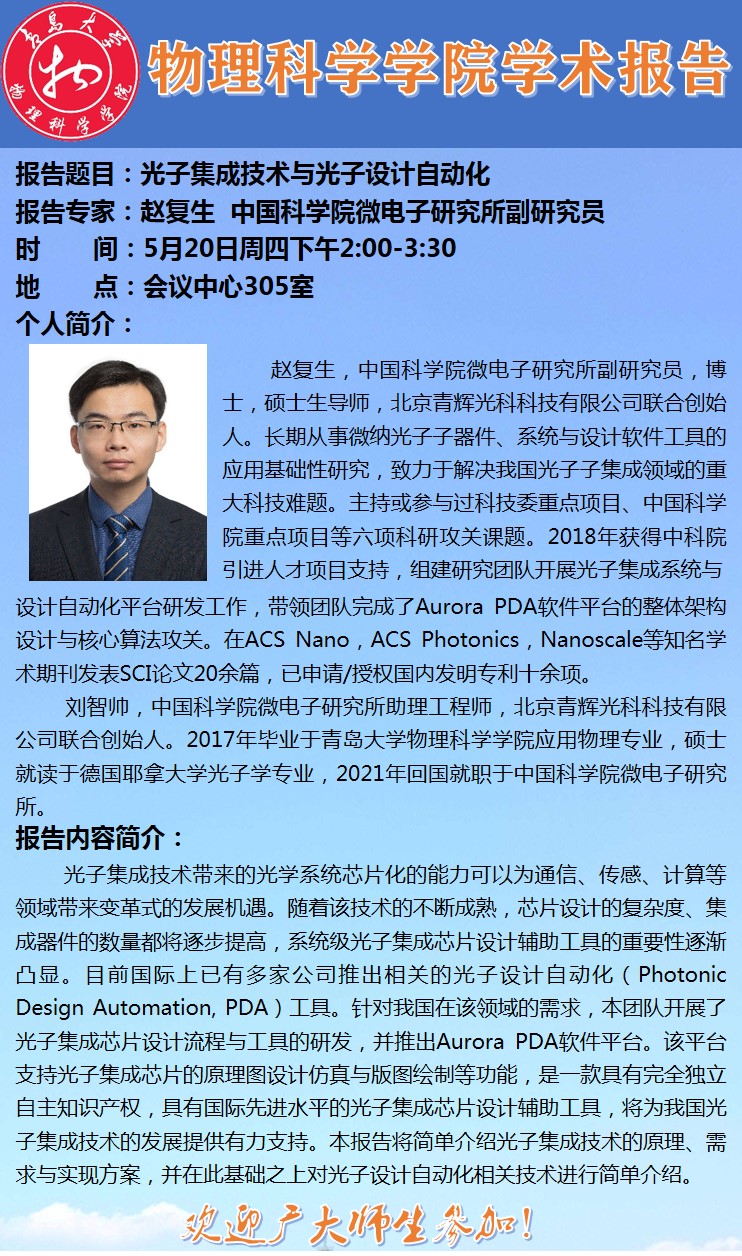 学术报告:中国科学院微电子研究所赵复生副研究员应邀来注册送彩金 作报告