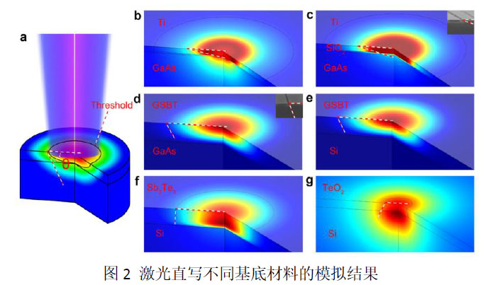 夏峰在本文中为实验系统建立了仿真计算模型,计算了激光对系统的热作用过程以及模拟了激光诱导Ti金属薄膜的氧化动力学过程。夏峰的模拟仿真工作为揭示5 nm纳米狭缝电极的加工机理做出了重要贡献,为进一步提高激光直写精度和效率奠定了基础。