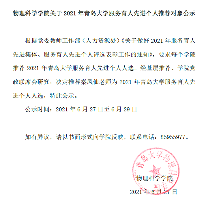 注册送彩金 关于2021年青岛大学服务育人先进个人推荐对象公示