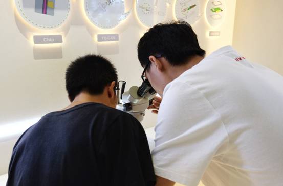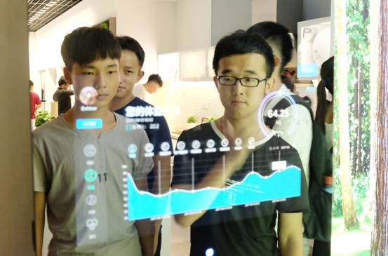 海信智能科技馆不仅展示了海信公司40余年的发展历程,还展示了海信公司最尖端的新产品和新技术。在展馆讲解员的讲解下,同学们参观体验了海信在通信、家电、智能家居、光通信、智能交通及医疗等产业的最新产品。除了实际的产品,展馆中还有很多介绍新产品的技术背景的展品:显示背光技术的显示屏,显微镜下的光波导器件,能做智能手术的医疗技术辅助设备……。同学们对于这些新奇的技术产生了浓厚的兴趣,纷纷仔细观察、亲身体验,并和讲解员及指导老师积极讨论。