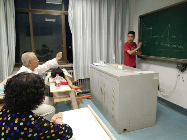 研究生和本科生通过PPT演示了自己的实验设计作品,学院张芳主任、何丽珠主任以及姜静、韩会景老师进行了现场指导,陈祖骥老师认真听取同学们的实验作品汇报,并一一给予指导。老师和同学们共同讨论实验作品的可行性以及如何解决存在的问题,大家热情高涨,整个活动一直持续到晚上10:30。此次展示会主要为即将于7月举行的“山东省第十二届大学生与研究生物理教学技能大赛”作准备。