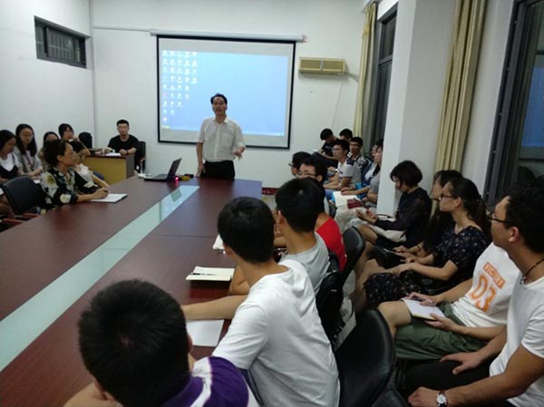 在博逸楼401会议室召开2017级研究生新生入学专业教育暨导师见面会。院党委书记黄国俊、副院长滕冰、副书记周志强、副院长王乙潜、研究生导师单福凯教授、研究生代表席中男、出席本次活动。会议由滕冰副院长主持, 17级全体研究生及学生工作相关人员参加了会议。