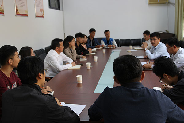 领导班子有关成员交流座谈,着重交流师资队伍、专业设置、学科方向、人才培养、考研就业等方面基本情况以及博士点验收评估、协同创新中心建设、国际化办学等方面存在的困难和问题。于红波对注册送彩金