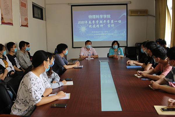 在博逸楼401会议室为学生举行了“抗疫精神”专题宣讲课,院党委副书记郝伟作了宣讲,马克思主义学院教师谭志敏参加了宣讲活动,物理教育系2018级学生现场聆听了宣讲。
