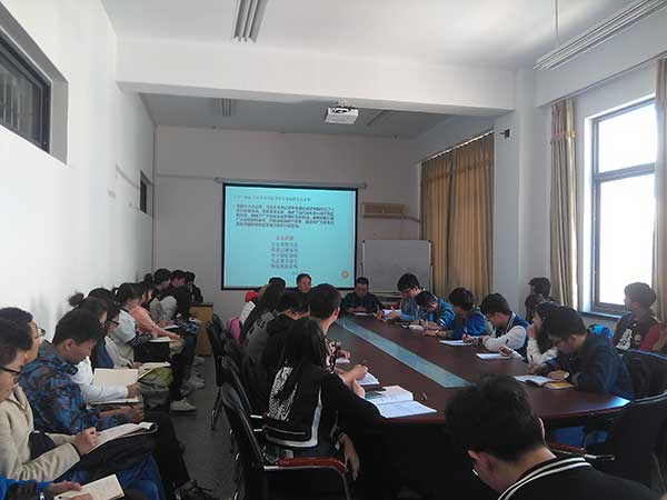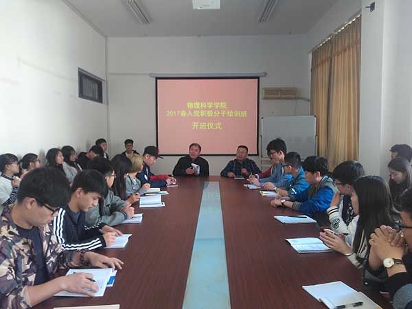 2017年春季学期入党积极分子培训班开班,院党委书记黄国俊在博逸楼401会议室为全体入党积极分子作了题为《端正入党动机,争取早日成为合格的共产党员》的首场主题报告。院党委副书记周志强、学工办主任李慧晶参加培训会。