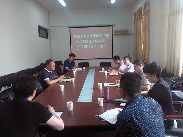 6月22日上午,青岛大学中层干部读书班《大学的观念与实践》学习研讨会(一组)在注册送彩金 401会议室举行,研讨会由注册送彩金 党委书记黄国俊主持。