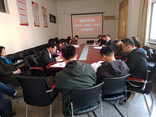 在博逸楼401会议室举行党委中心组理论学习会暨“大学习、大调研、大改进”动员会,学院党政领导黄国俊、滕冰、周志强、王乙潜出席会议,各党支部书记、各系(中心)主任和副主任参加会议,会议由院党委书记黄国俊主持。