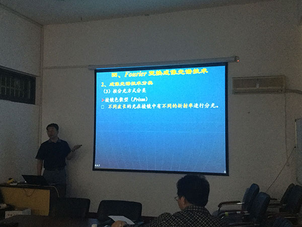 会上,金锡哲教授首先介绍了有关光子及光电子的基本概念以及国内外有关光学与光子学方面的动态,然后介绍了光电信息技术的基本情况以及Fourier变换成像光谱技术及其中在工作中的应用。