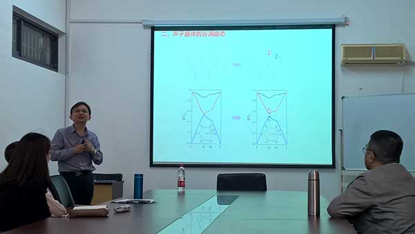 师生作了题为《声子晶体的Dirac态、谷态及谷边缘态》的学术报告。报告会由卢朝靖教授主持,陈沙鸥教授、云茂金教授等20余名师生聆听了报告。