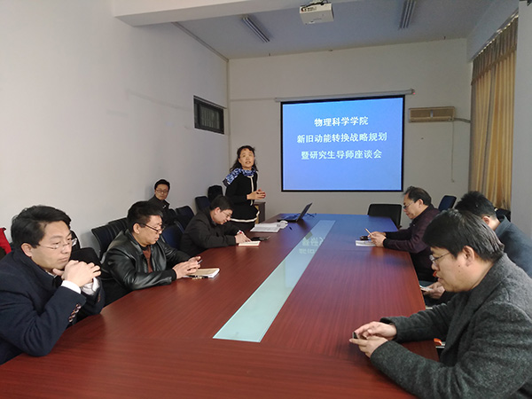 在博逸楼401会议室举行新旧动能转换战略规划暨研究生导师座谈会。院党政领导黄国俊、滕冰、周志强、王乙潜出席会议,研究生导师和2016年以来新进教师参加座谈会。