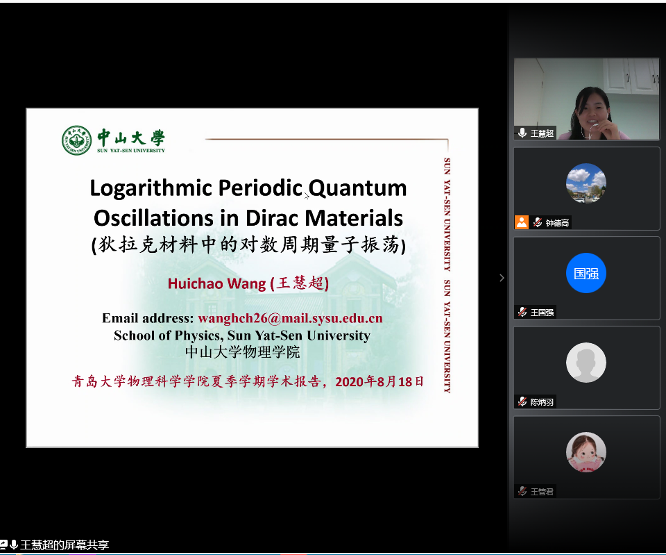 师生作了题为《狄拉克材料中的对数周期量子振荡》的线上学术报告,并介绍了中山大学物理学院的基本情况,作了研究生招生宣讲。报告会由注册送彩金