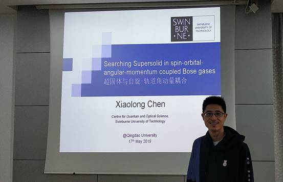 为师生作了题为《Searching Supersolid in Spin - Orbital - Angular - Momentum Coupled Bose Gases》的学术报告。报告特聘教授邹鹏主持,学院理论物理计算方向的师生参加了报告会。