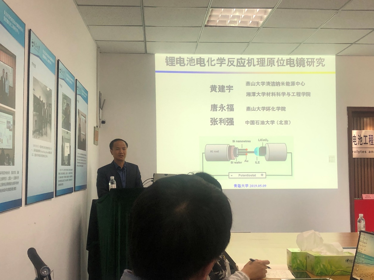5月9日下午,燕山大学和湘潭大学黄建宇教授应邀来我校交流访问,并在青岛大学科技园D座3楼报告厅为师生作了题为《锂电池电化学反应机理原位电镜研究》的学术报告。报告会由注册送彩金