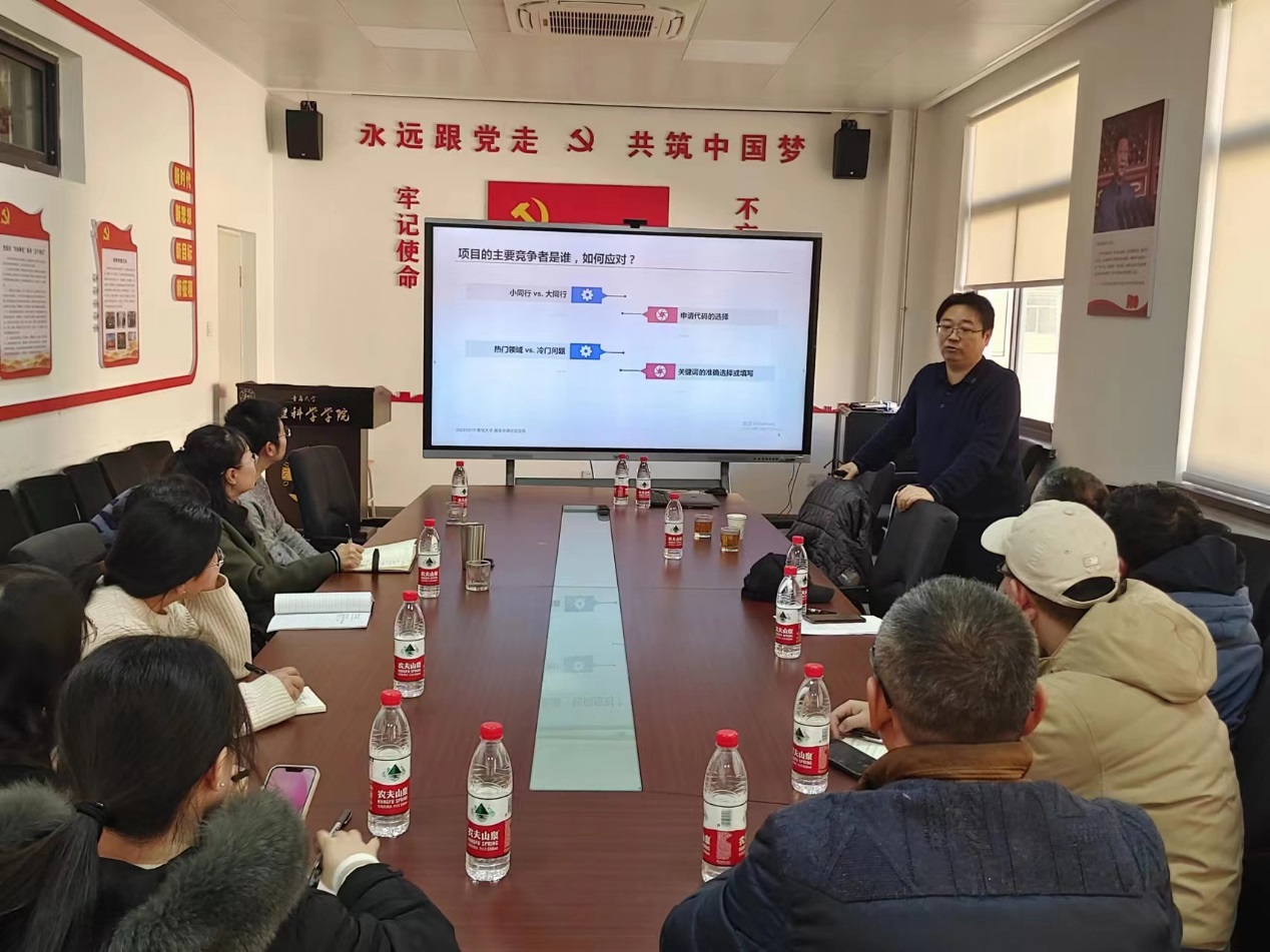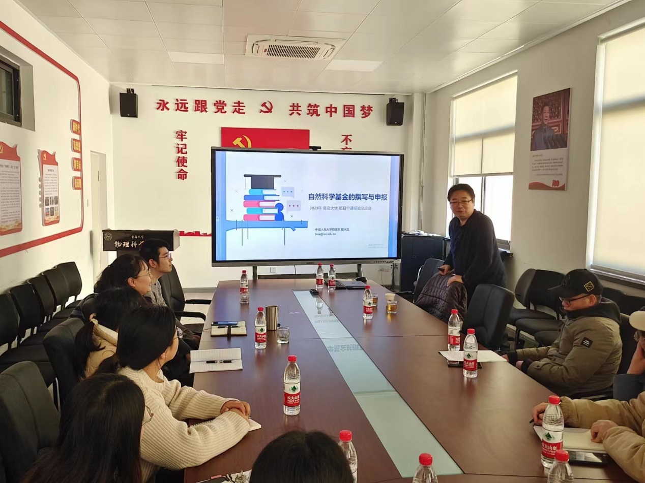 在博逸楼401会议室举行了2023年国家自然科学基金项目申请经验交流会。学院邀请了中国人民大学物理系教授夏天龙作了基金申请专题报告。报告会由院长滕冰主持,学院多位教师参加了会议。