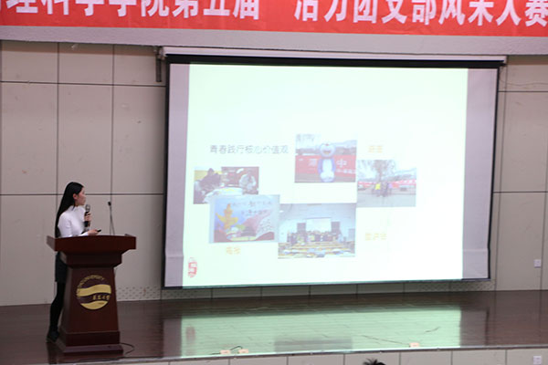 活动在激昂的国歌声中拉开帷幕,每个团支部限时8分钟,围绕“展现青春活力,构建和谐支部”的主题做汇报,内容涵盖了:“支部组织建设”、“思想道德建设”、“班风学风建设”、“支部特色活动”等方面。现场展示了:我的中国梦,奋斗的青春、我的团我的家、无手机课堂,我们打开思想建设方式、一家亲活动、科技创新成果等等丰富多彩的场景,全方位多角度情感饱满地讲述赢得了现场阵阵掌声。