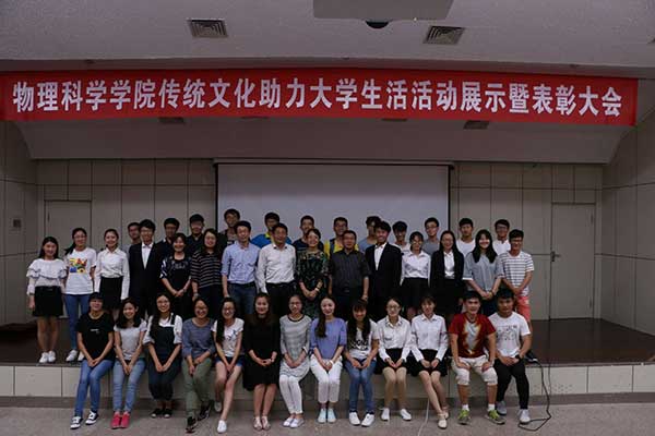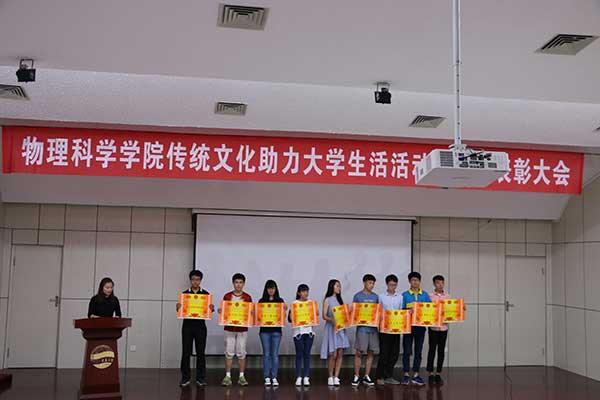 大会表彰了在学院“传统文化助力大学生活”系列活动中表现出的优异个人和集体。大会公布了“践行社会主义核心价值观”宣讲会中表现突出的宣讲人名单并进行了颁奖,并对宣讲会中最具特色的班级和个人进行了颁奖。随后,大会还对学院举办的第一届“大演说家”演讲比赛进行了总结。学院在对学生进行物理专业知识教育的同时,还进行传统文化的推广,举办了“以传统之名,扬读书之风”读书交流节活动。学院2016级各班在班里、班级之间举行了各种读书交流活动,丰富多彩的活动把各班联系起来,打破了专业的障碍,为同学提供了相互了解、相互认识的机会。最后大会进行了活动展示,优秀的宣讲人、“大演说家”们纷纷上台展示自己。光电的同学们以舞台剧的形式为我们重现了三国经典剧目《舌战群儒》,新能源的同学向大家展示了读书交流节中各班举办的活动。