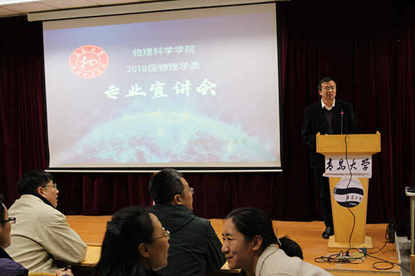 这是针对大一学生的“新动能”专业宣讲第二次报告会,对同学们做好下一步专业选择具有重要的指导作用。第一次报告“改变世界的物理学”由山东大学张承琚教授主讲。