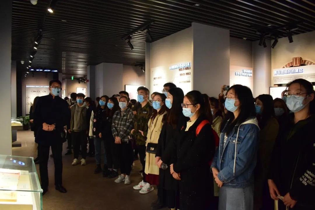 学生党支部在中共青岛党史纪念馆举行“学党史,温党誓” 主题党日活动暨新党员接收大会。院党委书记李升学,院党委副书记郝伟,学生党支部书记赵斐斐,辅导员韩章柱、李雪昕、侯美玲,部分学生党员参加了活动。