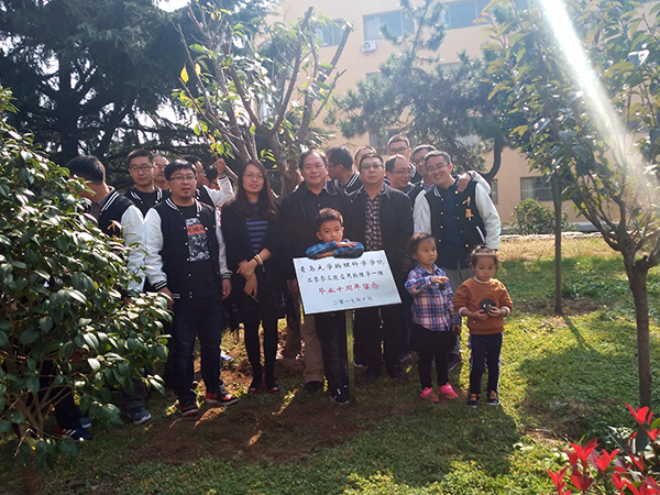 会上校友们依次进行了自我介绍,并回忆起当年充实的校园生活,校友们脸上洋溢着幸福的笑容。座谈会后,全体校友在博逸楼前合影留念,并在楼前松软的土地上种下了象征着毕业十周年的纪念树,把“兰桂飘香,桃李满天下”的美好祝愿送给了母校。