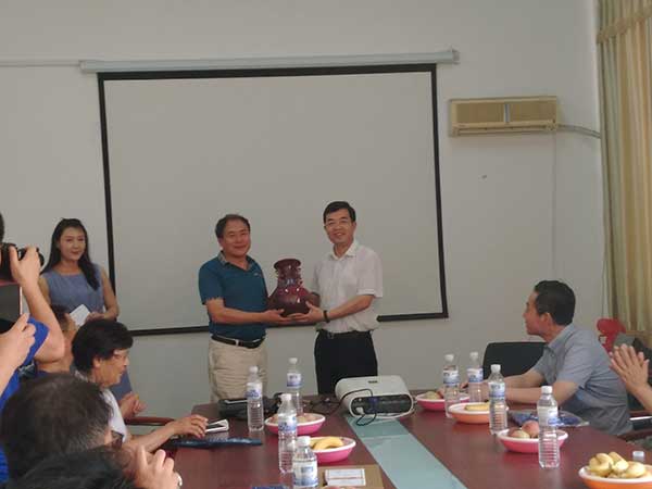 87级校友相聚母校,院领导黄国俊、滕冰、王乙潜以及校友办领导、部分老教师出席校友返校欢迎会,张海波校友代表全班同学向学院和老师们赠送了纪念品,同学情、师生情汇成了一股暖流。