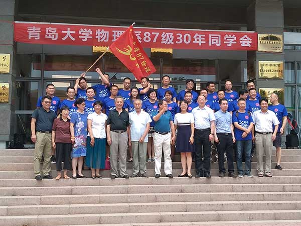 黄国俊书记欢迎各位87级校友30年重回母校,他介绍了学院基本情况并从学生培养、教学科研、实验室平台申报、人才培养方案修订、博士点申报、高层次人才引进等方面介绍了学院最近的有关情况和下一步重点工作,详细介绍了学校胶州校区和即墨校区有关情况,最后他祝福老教师和校友们身体健康、玩得快乐!