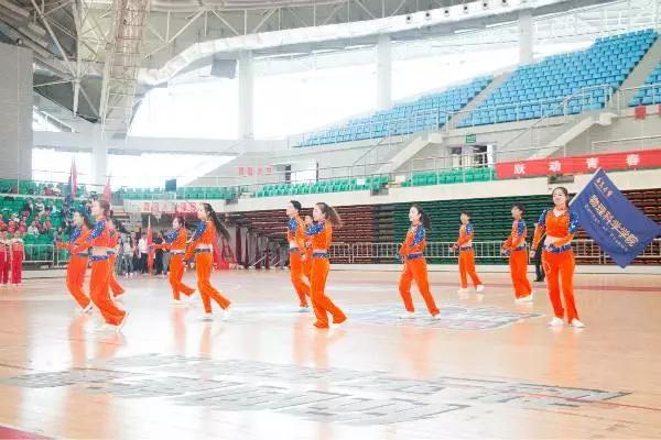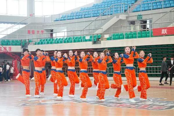 健美操队第八个出场,只听见“格物致理,自强不息,物院加油!”的口号响彻全场,他们的高难度的技巧、明快奔放的身姿、鲜明的节奏感向大家展示了青春的激情,展示了力与美的结合,贏得了在场观众的阵阵喝彩声;队员们身着橘黄色队服彰显了物理学院的热情与奔放,其上的装饰更加演绎出注册送彩金